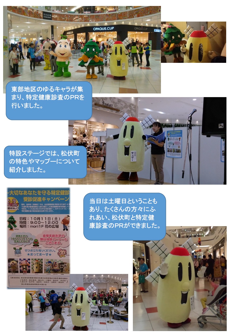 平成26年10月11日(土)に、埼玉県東部地区のキャラが集合して「特定健診受診勧奨キャンーン」を実施しました!