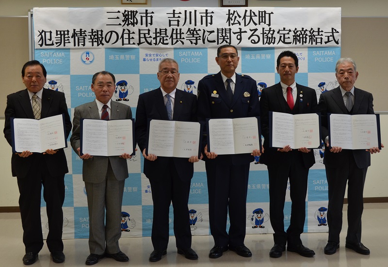 ※締結式は、吉川警察署と吉川警察署管内の2市1町(松伏町、三郷市、吉川市)及び松伏町、吉川市の防犯住民団体