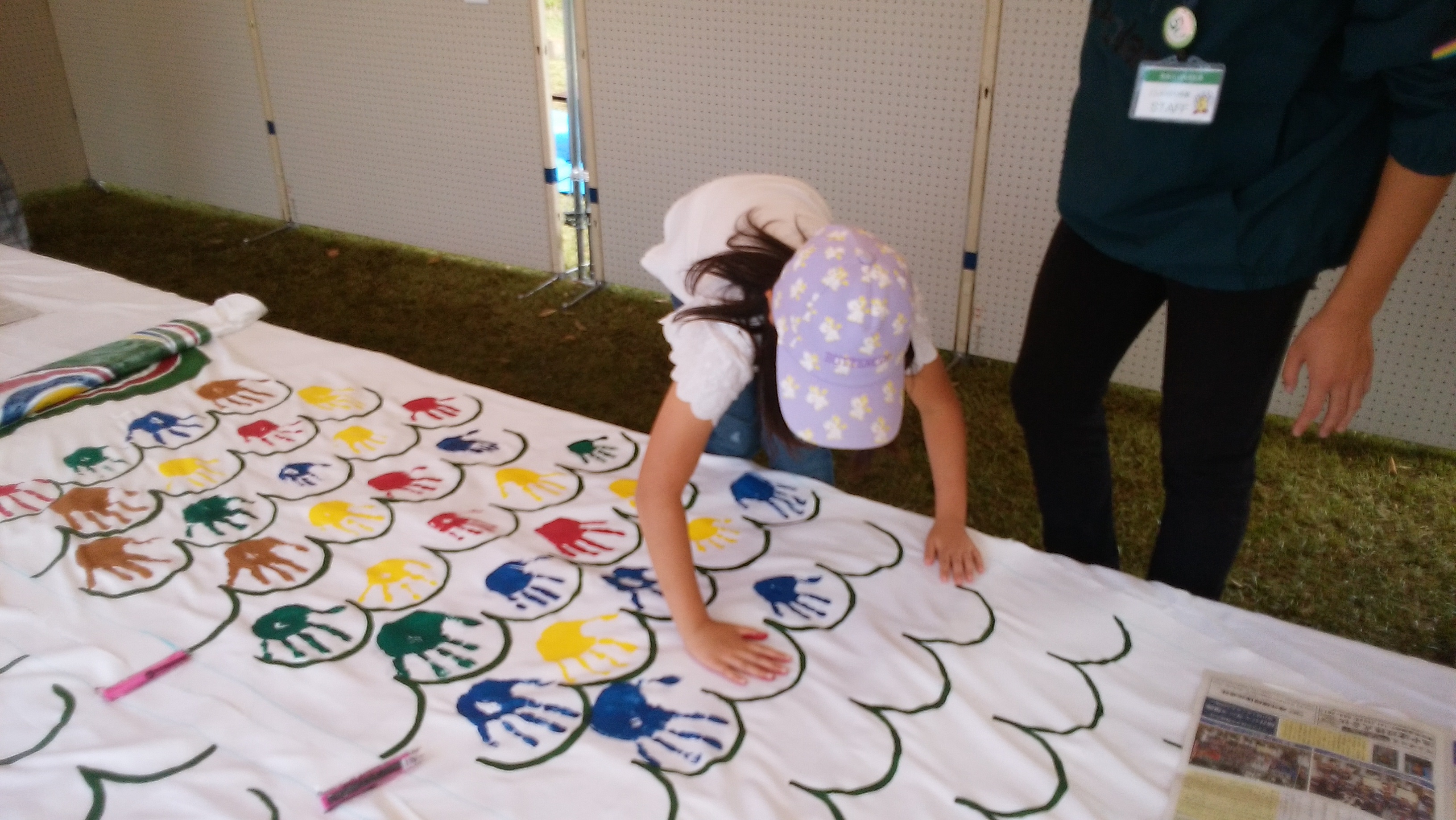 こいのぼりのうろこ部分は、来場者の皆さんのカラフルな手形で埋めつくされ、素敵なこいのぼりが完成しました!