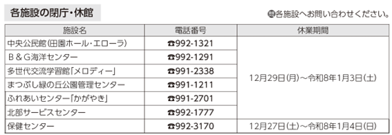 ■年末年始の閉庁期間/12月27日(土)~令和8年1月4日(日)
