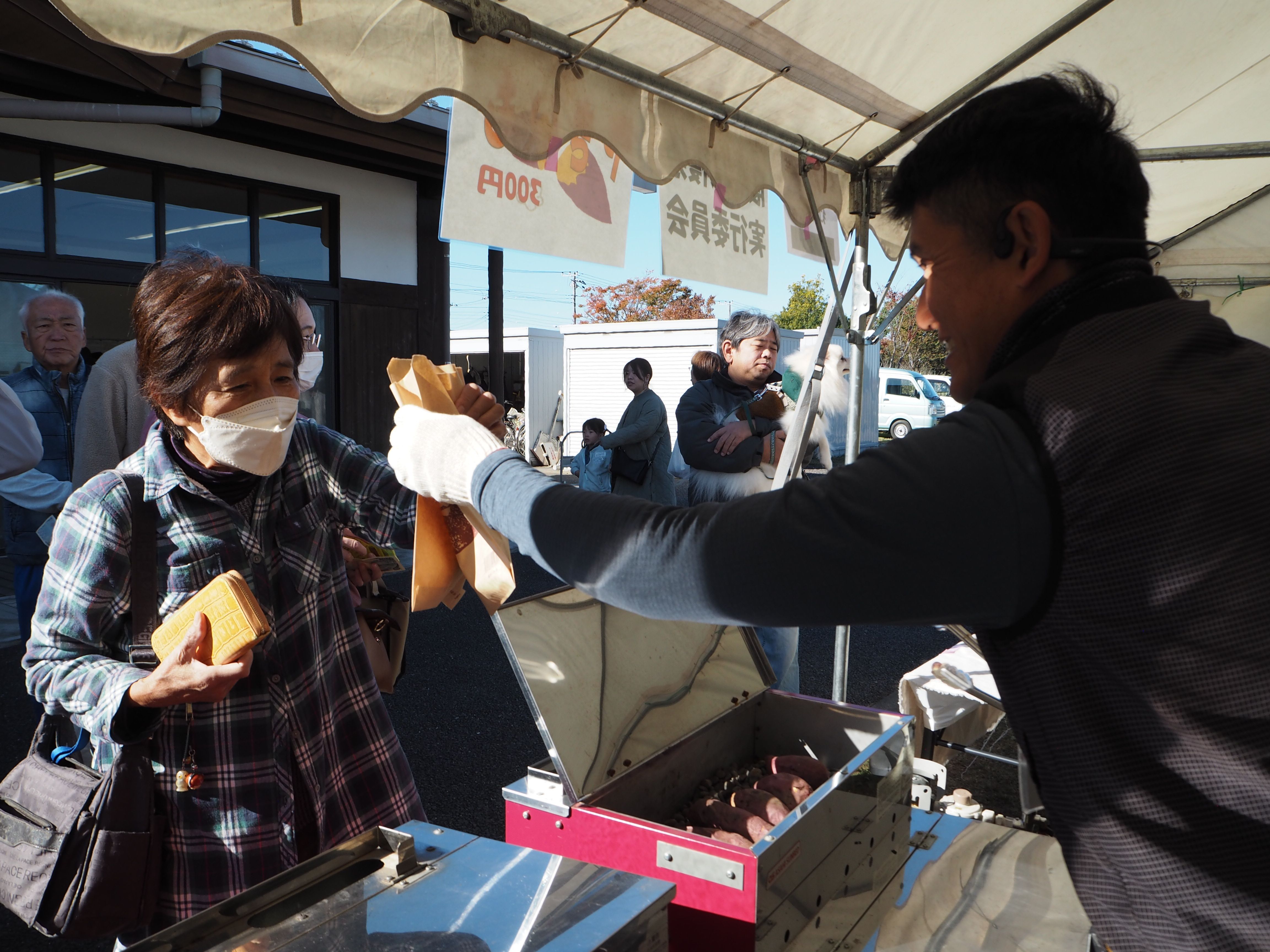 収穫祭恒例の「焼き芋」を販売しました 寒空の中ホカホカの焼き芋は大人気 |